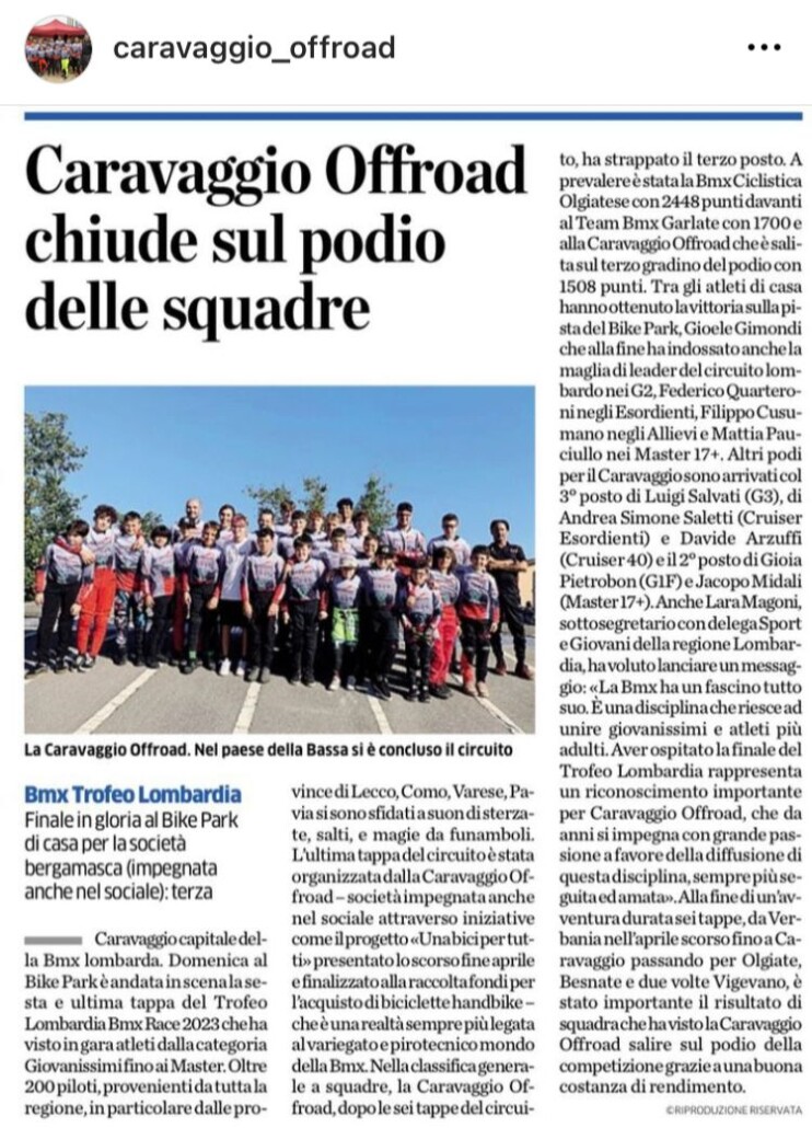 Questo infatti è solo il primo obiettivo raggiunto, il Caravaggio Off Road intende ampliare le attività sportive creando nuovi spazi di allenamento attraverso l’asfaltatura del piazzale antistante la pista di BMX, ma anche rinnovando la scuola, gli spogliatoi e gli uffici e cercando persone che vogliano dedicare il proprio tempo alla società.